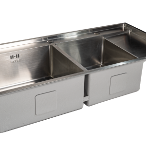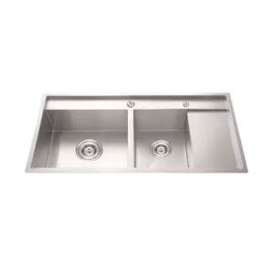 Chậu rửa bát HUGE H-P200D với kích thước chậu lớn 1000 x 480 x 230mm và kích thước cắt đá 980x460mm được thiết kế với 2 hố, tạo điều kiện thuận lợi cho việc làm việc đa dạng và hiệu quả trong bếp.