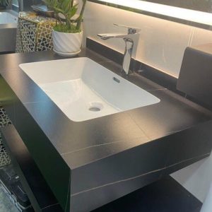 +Bộ bàn đá 2 tầng lavabo âm tràn viền, vô cực chống trầy xước kèm giá treo tường nhập khẩu