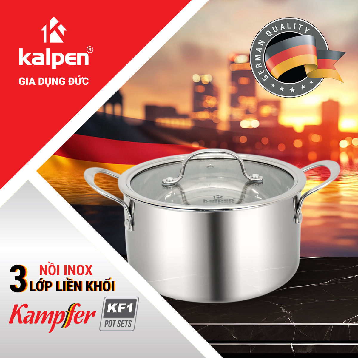 Kalpen Việt Nam giới thiệu bộ nồi inox 3 lớp liền khối Kalpen Kampfer để chị em nội trợ có thêm sự lựa chọn khi mua sắm cho gia đình hoặc sử dụng làm quà tặng tân gia rất ý nghĩa nhé!