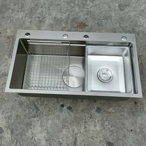 Chất liệu inox 304 phủ nano chống dính. Chậu rửa bát được thiết kế mới đẹp nhiều tính năng thành âm chống bắn. Xi phông có cốc lọc rác tốt, ngăn mùi hiệu quả.