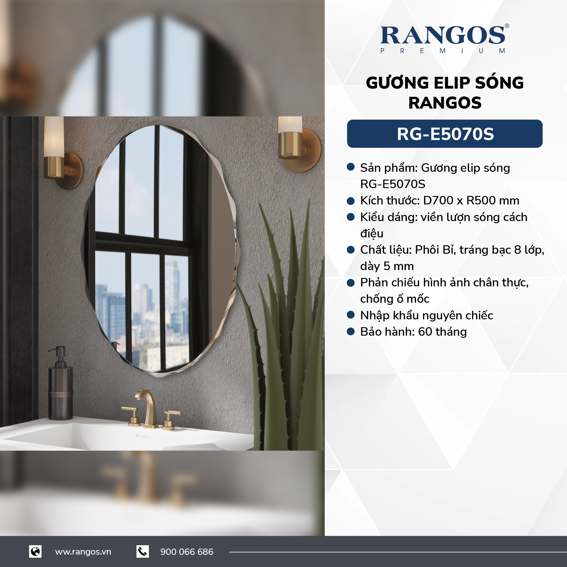 • Sản phẩm: Gương Elip lượn sóng Rangos RG-E5070S