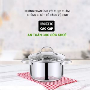 Nồi inox có đường kính 20cm, cao 11,5cm và dung tích 3.6L sẽ phù hợp sử dụng cho mọi gia đình.