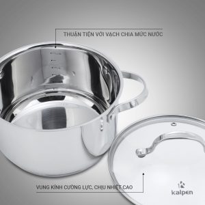 Nồi Inox Kalpen có khả năng chịu được nhiệt độ cao, chống trầy xước, không dễ bị biến dạng hay oxi hóa trong quá trình sử dụng, đảm bảo tuổi thọ và độ bền bỉ của sản phẩm.