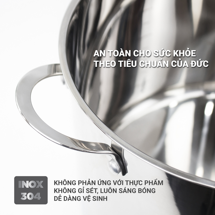 Nồi luộc gà cao cấp Kalpen Lermat được làm từ inox 304. Đây là dòng inox cao cấp, không tác dụng với thức ăn, không gỉ sét, không thôi nhiễm giải phóng chất độc hại, an toàn cho sức khoẻ người sử dụng.