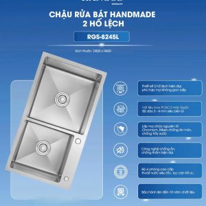 CHẬU RỬA BÁT HANDMADE 2 HỐ LỆCH CÓ GIẬT CẤP RGS-8245L-GC